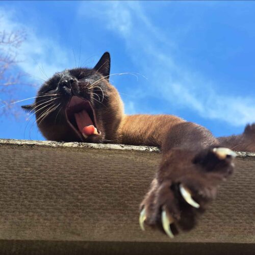 I’m a Siamese with high standards and low tolerance. I accept exactly two humans: Edvard and Sabina. Everyone else exists on borrowed time. I dislike cold weather, loud noises, fast movements, and especially other cats with opinions.